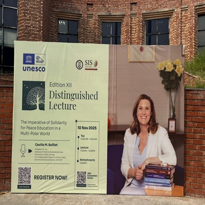 شاركت الملحقية الثقافية في دلهي الجديدة في الفعالية الأكاديمية التي نظّمها معهد ماهاتما غاندي للتربية من أجل السلام والتنمية المستدامة التابع لمنظمة اليونسكو (UNESCO MGIEP)، والتي تمثّلت في المحاضرة المتميزة الثانية عشرة (Twelfth Distinguished Lecture) التي قدّمتها Professor Dr. jur. Cecilia M. Bailliet, أستاذة القانون الدولي في جامعة أوسلو – النرويج، والخبيرة المستقلة للأمم المتحدة في مجال حقوق الإنسان والتضامن الدولي وذلك بتاريخ 10 /11/ 2025 في جامعة جواهر لال نهرو – دلهي الجديدة.