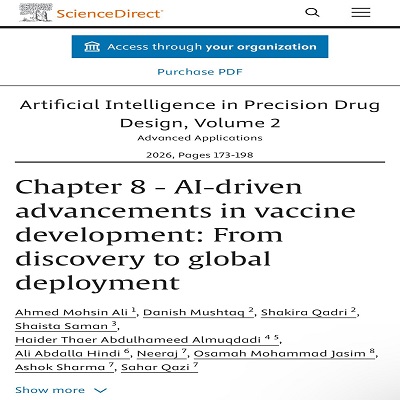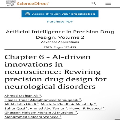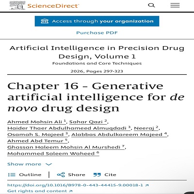 في إنجاز علمي يعكس تميّز الكفاءات العراقية في ميادين البحث العلمي المتقدمة، نجح الطالب العراقي أحمد محسن علي، المتخصص في مجال (Bioinformatics)، في نشر ثلاثة فصول علمية ضمن الكتاب الدولي Artificial Intelligence in Precision Drug Design الصادر عن دار النشر العالمية Elsevier.