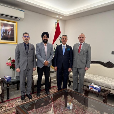 استقبل القائم بالأعمال العراقي في نيودلهي السيد عدي حاتم محمد، في مقرّ السفارة، السيد Jaspreet Singh Arneja، والذي يشغل منصب Associate Director في Sharda University، وذلك خلال زيارة مجاملة قام بها إلى السفارة، بحضور الملحق الثقافي والملحق الصحي.