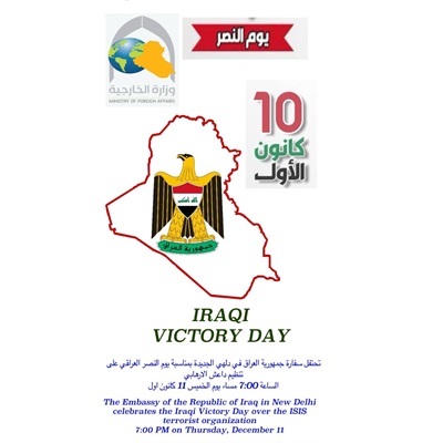 شاركت الملحقية الثقافية لجمهورية العراق في نيودلهي في احتفالية يوم النصر، التي نظّمتها سفارة جمهورية العراق في نيودلهي، وذلك إحياءً للمناسبة الوطنية التي تجسّد الانتصار على تنظيم داعش الإرهابي واستذكارًا لتضحيات أبناء شعبنا من القوات الأمنية والحشد الشعبي.